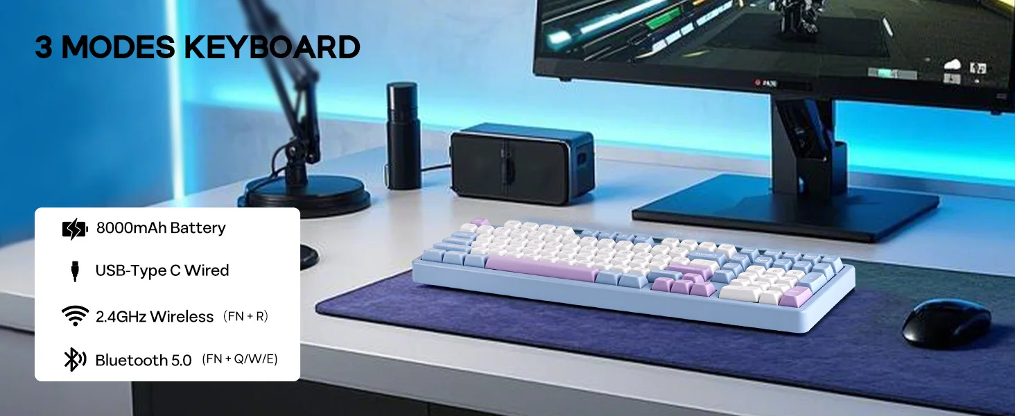 Powered by a dual-cell 8000mAh battery (4000mAh + 4000mAh), the Blade101 supports extended wireless use with fewer recharges — perfect for work, gaming, or multi-device setups.