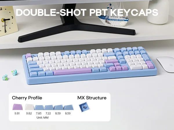 Built with a true gasket-mounted structure, the Blade101 offers soft, cushioned keystrokes and reduced harshness compared to traditional tray-mounted boards. Multiple internal sound-enhancing layers — including sandwich foam, switch pads, PET film, sound pads, and bottom dampening foam — work together to minimize hollow noise and create a more controlled, satisfying sound profile.