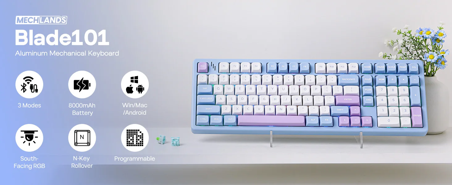 MechLands Blade101 Full Compact 96% Layout Gasket-Mount Wirless Aluminum Mechanical Keyboard
