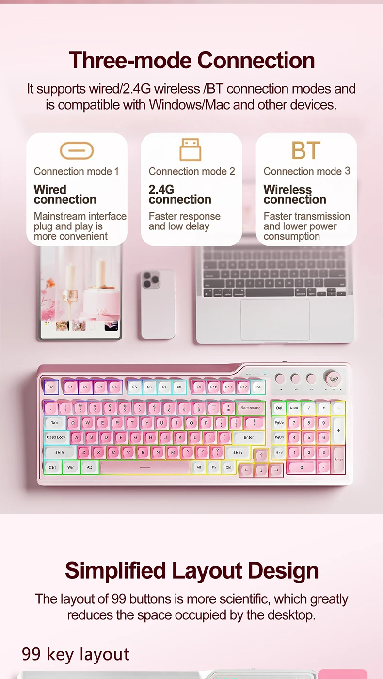 AULA F3099 Membrane 99 Keys RGB Backlit Tri-Mode Keyboard