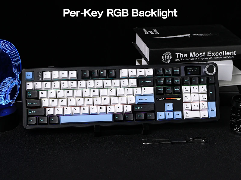 We love this board for its true full-size layout, creamy factory-lubed switches, deep sound dampening, and premium extras like the LCD screen and knob. It’s an excellent choice for anyone who wants a quiet, comfortable, and feature-rich full-size keyboard without sacrificing wireless flexibility or sound quality.