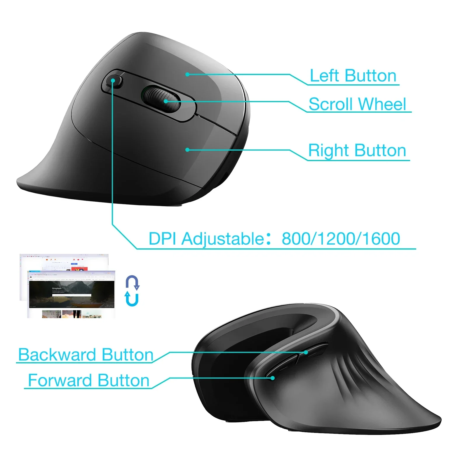 ✋ Ergonomic Vertical Design · Natural Hand Position